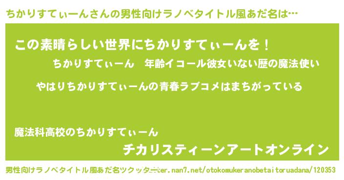 | ファンタジー風あだ名 | 『エターナルチカリスティーンー』 |