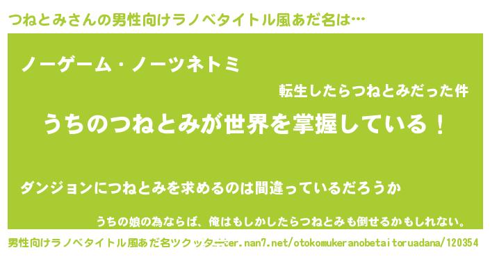 | 女子向けラノベタイトル風あだ名 | 『男装つねとみの憂鬱な任務』 |