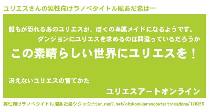 | 女子向けラノベタイトル風あだ名 | 『乙女ゲームの破滅フラグしかない悪役ユリエスに転生してしまった…』 |