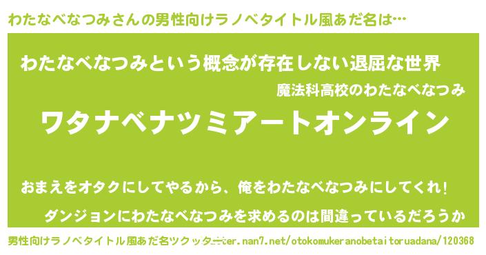 | 胡散臭い通販商品みたいなあだ名 | 『億万長者になれるブレスレット…その名も「わたなべなつみ」』 |