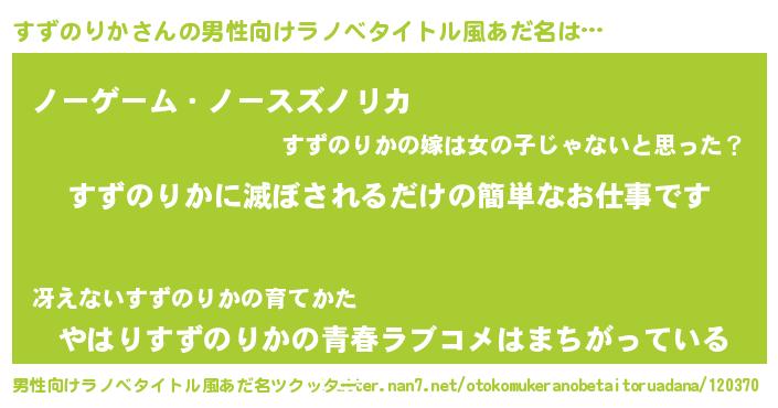 | ヒーロー風カッコイイあだ名 | 『慈愛の使者すずのりか』『黄金騎士スズ』 |