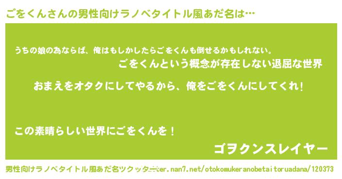 | 女子向けラノベタイトル風あだ名 | 『ごをくん夫妻のなれそめ』 |