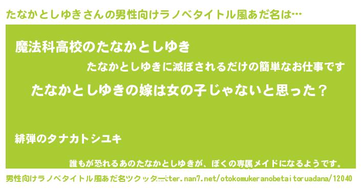 | ポケモン風あだ名 | 『ヒタナカトシユキ』『タナセウス』 |