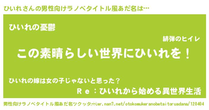 ひいれさんの男性向けラノベタイトル風あだ名をツクッター!