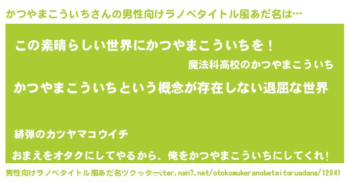 | 女子向けラノベタイトル風あだ名 | 『異世界で失敗しない100のかつやまこういち』 |