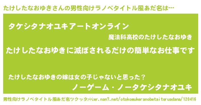 | 女子向けラノベタイトル風あだ名 | 『横柄たけしたなおゆきと宰相陛下』 |