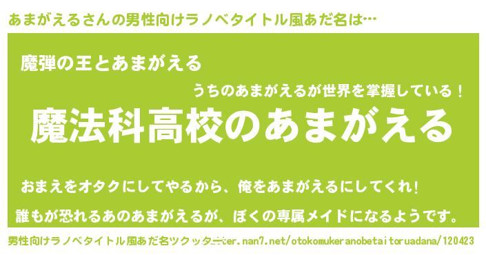| 意味不明あだ名 | 『自称あまがえる』『永久保存あまがえる』 |