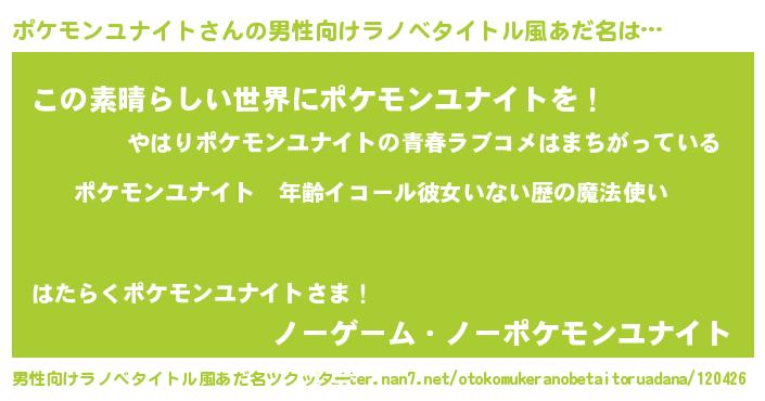 | 女子向けラノベタイトル風あだ名 | 『ポケモンユナイトの玉の輿計画!』 |