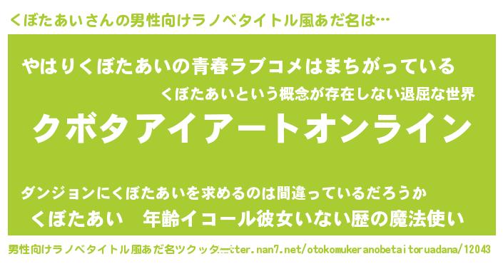 | ファンタジー風あだ名 | 『クボフェル』『エターナルクボタアイー』 |