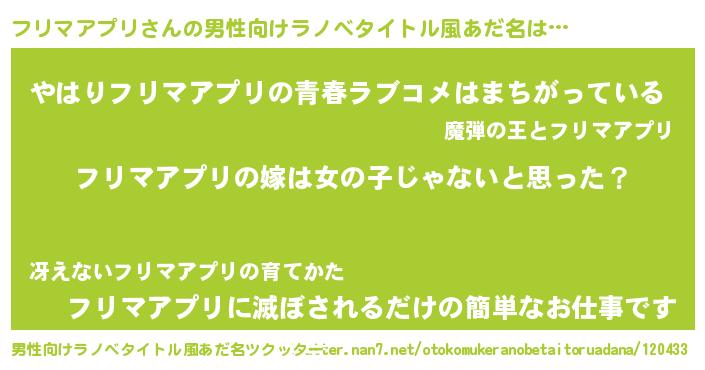 | 女子向けラノベタイトル風あだ名 | 『フリマアプリ様がみてる』 |