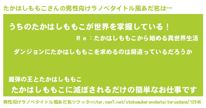 | ヘコむあだ名 | 『たかぷりん』『たかはしももこ(小並感)』 |