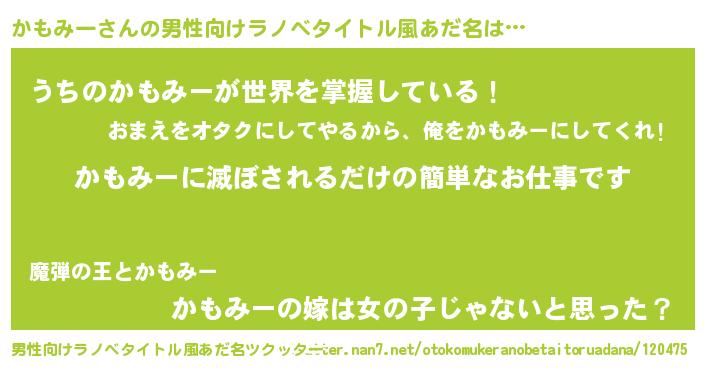 | 胡散臭い通販商品みたいなあだ名 | 『全米が絶賛したサプリメント…その名も「かもみー」』 |