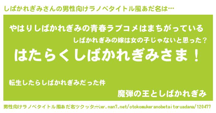 | ファンタジー風あだ名 | 『エターナルシバカレギミー』 |