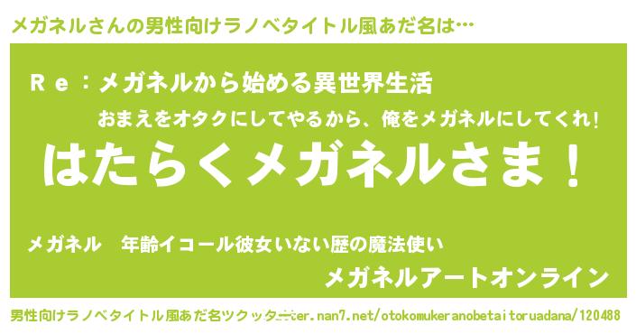 | ヒーロー風カッコイイあだ名 | 『サイバー戦士メガネル』『仮面メガダー』 |