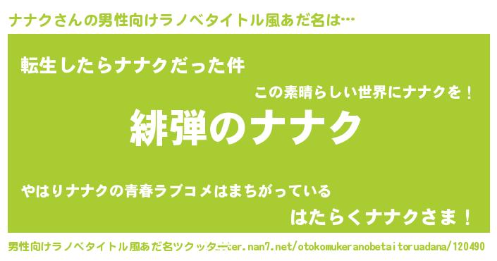 | ヘコむあだ名 | 『つくし』『ナナク(笑)』『ナナっぺ』 |