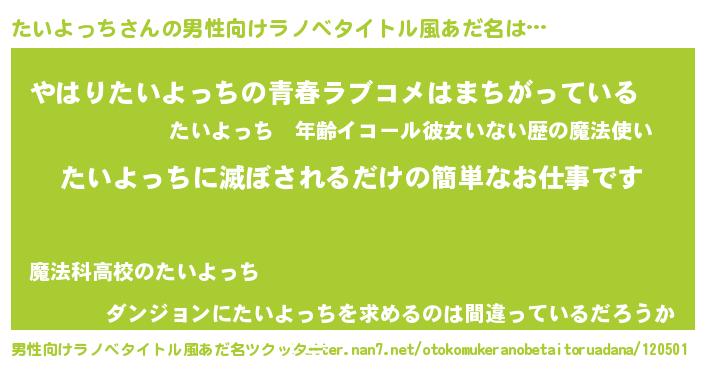 | 胡散臭い通販商品みたいなあだ名 | 『世界が平和になる高級そうな絵画…その名も「たいよっち」』 |