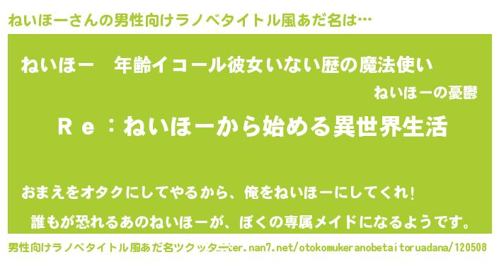| ヘコむあだ名 | 『ねいほー(遠い目)』『ねいもー』 |