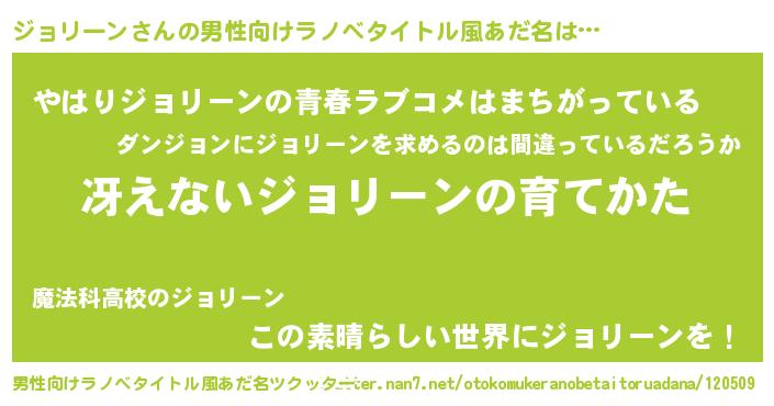 | 女子向けラノベタイトル風あだ名 | 『シンデレラジョリーン家の靴箱館』 |