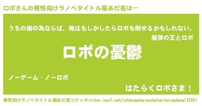 | 胡散臭い通販商品みたいなあだ名 | 『必ず成功する水晶球…その名も「ロボ」』 |