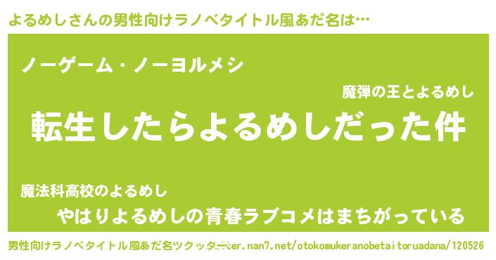 | ヒーロー風カッコイイあだ名 | 『愛の使者よるめし』『仮面ヨルダー』 |
