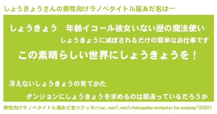 | 意味不明あだ名 | 『住所不定無職しょうきょう(91歳)』 |