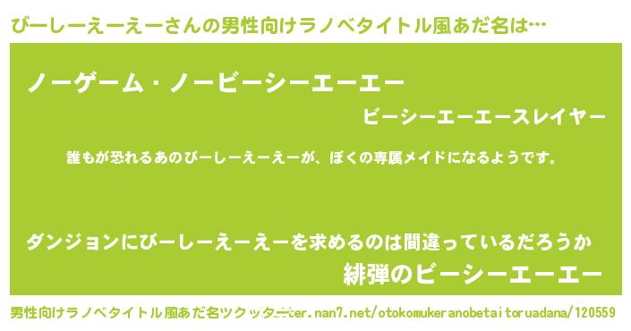 | ヘコむあだ名 | 『びーしーえーえー(遠い目)』『びー太郎』 |