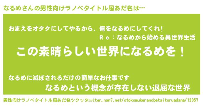 | ヒーロー風カッコイイあだ名 | 『仮面ナルダー』『愛の使者なるめ』 |