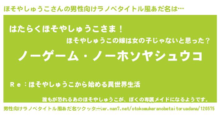 | 女子向けラノベタイトル風あだ名 | 『ほそやしゅうこ恋絵巻』 |
