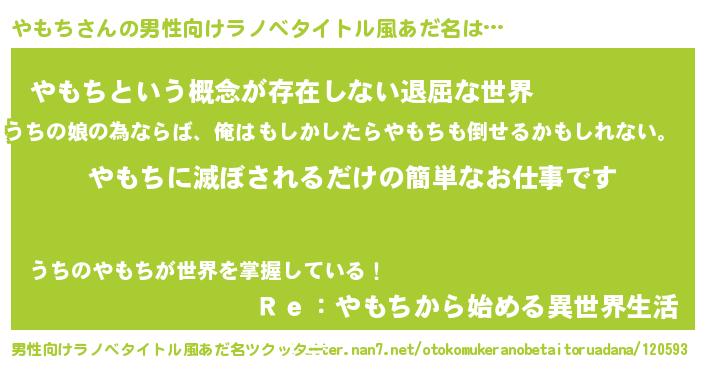 | 胡散臭い通販商品みたいなあだ名 | 『来世でも幸せになれる健康食品…その名も「やもち」』 |