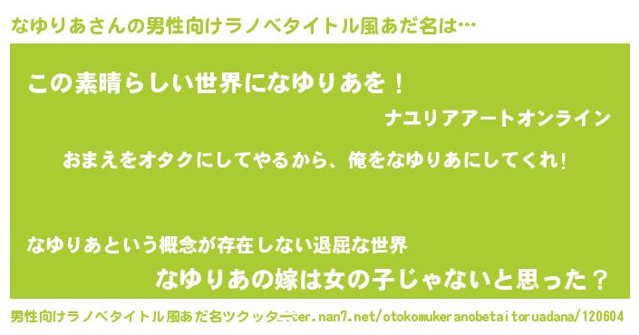 | ヒーロー風カッコイイあだ名 | 『正義の使者なゆりあ』『仮面ナユダー』 |