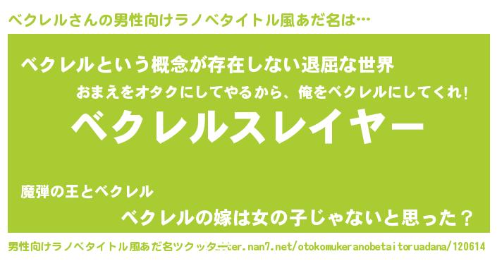 | 胡散臭い通販商品みたいなあだ名 | 『絶対に幸福をもたらす水素水…その名も「ベクレル」』 |