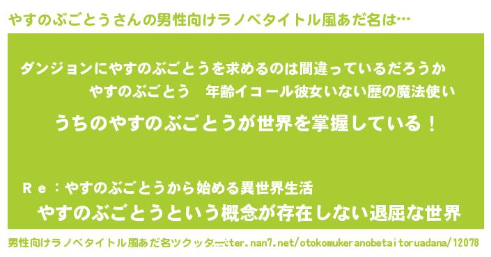 | ヘコむあだ名 | 『やすお』『やすのぶごとう(笑)』 |