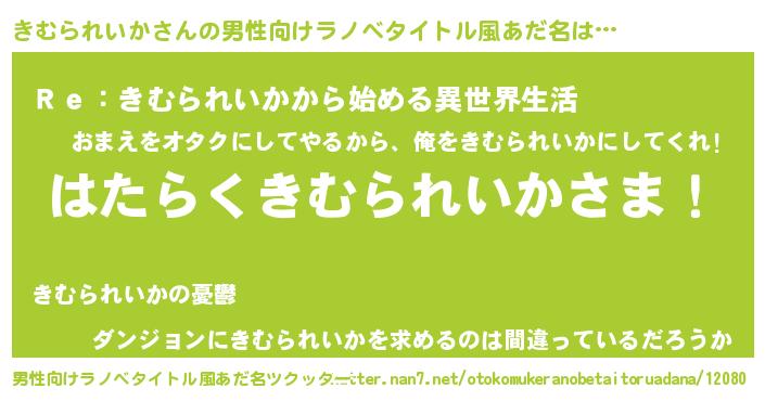 | 意味不明あだ名 | 『自称きむられいか』 |