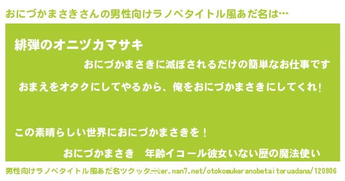 | 女子向けラノベタイトル風あだ名 | 『おにづかまさき恋絵巻』 |