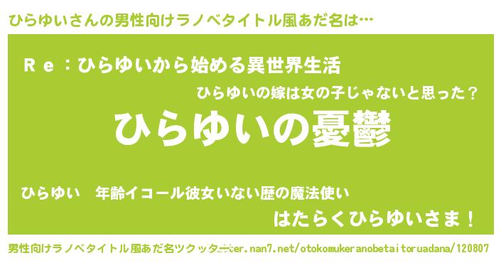 | 女子向けラノベタイトル風あだ名 | 『(仮)ひらゆいのやんごとなき事情』 |