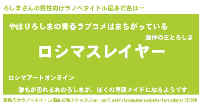 | ヒーロー風カッコイイあだ名 | 『ウルトラろしまマン』『ネオロシマ』 |