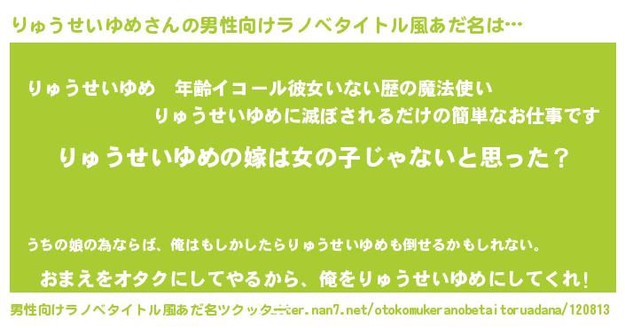 | 女子向けラノベタイトル風あだ名 | 『りゅうせいゆめ様がみてる』 |
