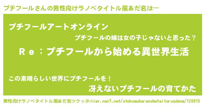 | 意味不明あだ名 | 『自称プチフール』『ペロリンプチフール』 |