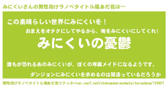 | 女子向けラノベタイトル風あだ名 | 『みにくい姫と円卓の騎士』 |