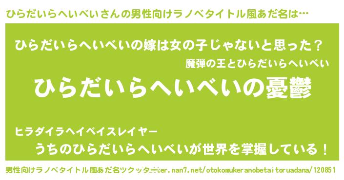 | 胡散臭い通販商品みたいなあだ名 | 『必ず成功する水晶球…その名も「ひらだいらへいべい」』 |