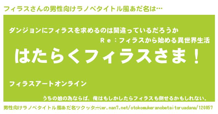 | 胡散臭い通販商品みたいなあだ名 | 『信頼と実績のネックレス…その名も「フィラス」』 |
