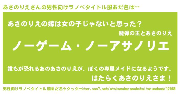 | 女子向けラノベタイトル風あだ名 | 『死神あさのりえの再婚』 |