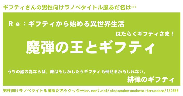 | 意味不明あだ名 | 『住所不定無職ギフティ(65歳)』 |