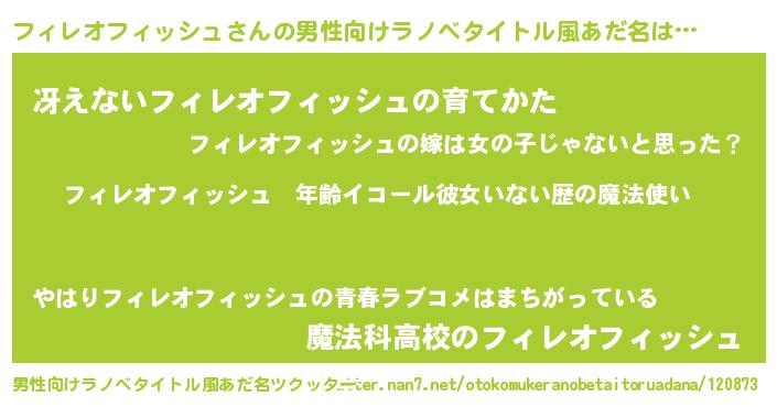 | 女子向けラノベタイトル風あだ名 | 『フィレオフィッシュの玉の輿計画!』 |