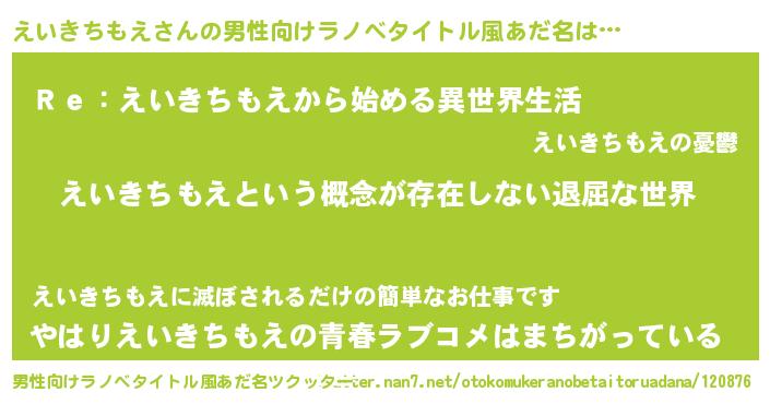 | 女子向けラノベタイトル風あだ名 | 『えいきちもえの契約王妃』 |
