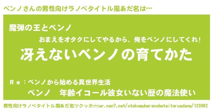 | 意味不明あだ名 | 『住所不定無職ベンノ(40歳)』『自称ベンノ』 |
