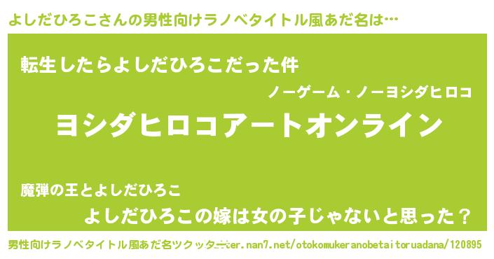 | 女子向けラノベタイトル風あだ名 | 『誰かこのよしだひろこを説明してください! ~契約から始まるウェディング~』 |