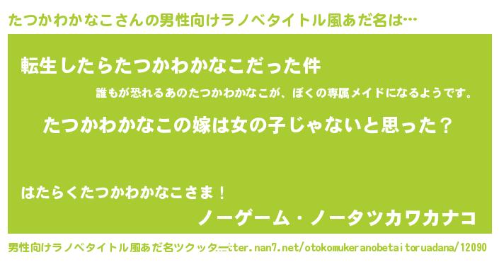 | ヒーロー風カッコイイあだ名 | 『炎刃騎士タツ』『ネオタツカワカナコ』 |