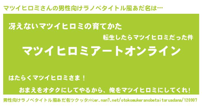 | 胡散臭い通販商品みたいなあだ名 | 『モテモテ間違いなし霊験あらたかなお札…その名も「マツイヒロミ」』 |