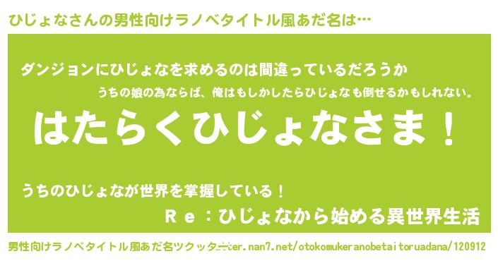 | 女子向けラノベタイトル風あだ名 | 『首の姫と首なしひじょな』 |